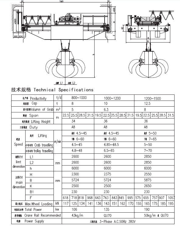 2、 我公司生產(chǎn)的垃圾抓斗起重機能執(zhí)行嚴格的提升及輸送作業(yè),確保垃圾焚燒發(fā)電廠的正常作業(yè)。